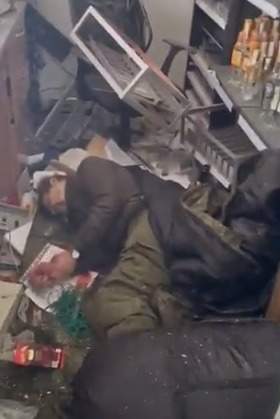 Se pare că rusul se afla în acel magazin de băuturi alcoolice, asta după ce unitatea sa militară fusese eliminată de armata ucraineană, găsind aici un loc de refugiu.