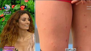 Claudia: Asa se vine de la Exatlon, intr-un picior. Bubele sunt pe jos, am preferat sa le ascund, sa nu sperii pe nimeni. Insectele alea ma piscau la fel si cand dormeam in casa, nu doar la cotet. De-aia am si dormit bine imbracata. A fost groaznic! Am trecut pe langa moarte. Puteam face soc anafilactic.
