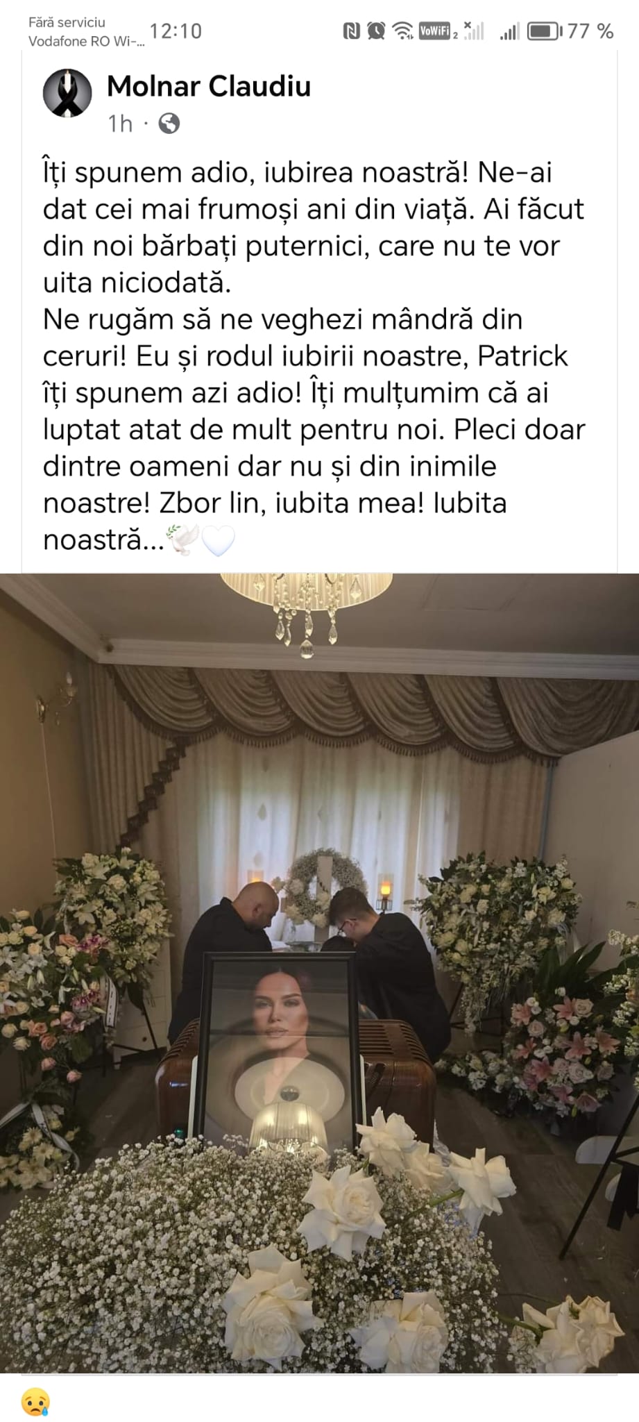 Anca Molnar a lăsat în urma lacrimi de durere. Soțul și fiul său o plâng îndurerați, lângă sicriu, pentru ultima data. Claudiu Molnar a postat un mesaj sfâșietor în memoria soției sale.