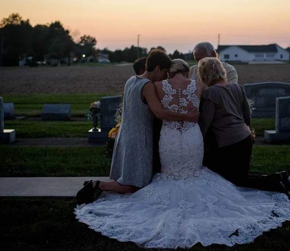 4 din 4 | Soţul ei a murit înainte de nuntă! Tânăra s-a îmbrăcat în rochie de mireasă şi i-a jurat iubire veşnică la mormânt
