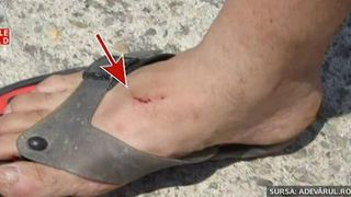Costel Anghelescu, pescar: "A sarit direct pe picior cand s-a vazut prins. Direct pe picior a sarit. Uite, se si vede. A dat si eu am tras piciorul ca nu stiam ce sare de ma musca."