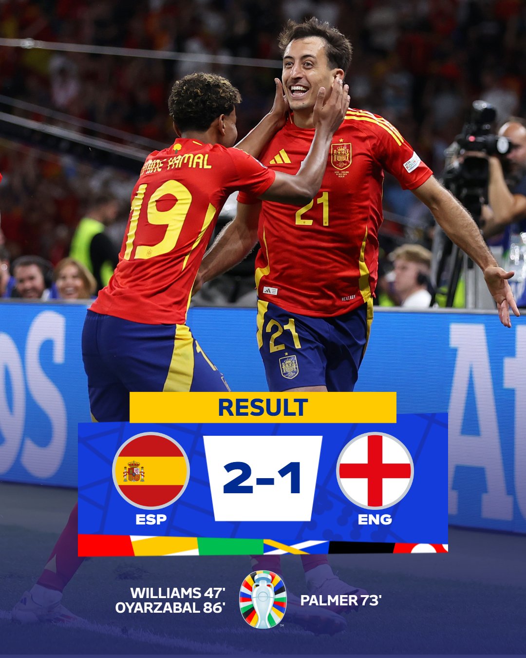 🇪🇸 Spain are champions of Europe 🏆 #EURO2024 pic.twitter.com/Ch0AF0iPWl