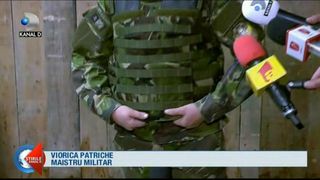 "Ceva mai mica, pe trei marimi, dar chiar mult mai versatila si adaptata corpului unei femei- soldat, aceasta vesta ar putea sa intre in dotarea armatei romane incepand de anul viitor. Si am fi printre putinele tari care le si pun la treaba intr-un teatru de operatii."