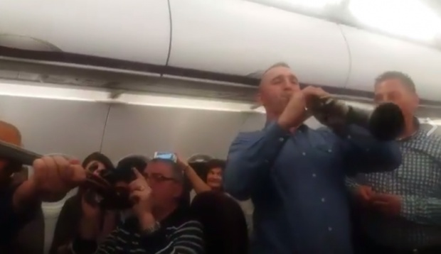 2 din 2 | Spectacol intr-un avion ce mergea de la Satu Mare la Londra. Un calator a scos taragotul si a dat drumul la petrecere. Imagini din timpul zborului