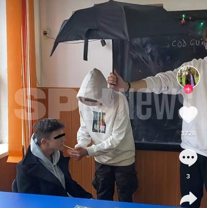 Plin de el, „El Capo de la Comănești” s-a aplecat, ca să îi aprindă un aghiotant țigara, apoi a postat imaginile pe TikTok, în speranța că profesorii nu îi vor vedea isprava, ca să îl sancționeze.