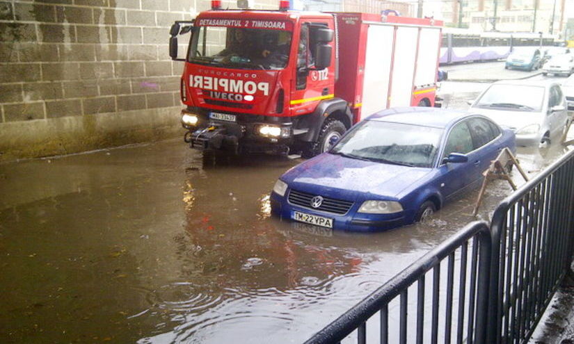 Judetul Timis s-a aflat vineri seara sub cod galben de furtuna. In urma ploii puternice, mai multe strazi si pasaje au fost inundate, dar si holul Spitalului CFR.