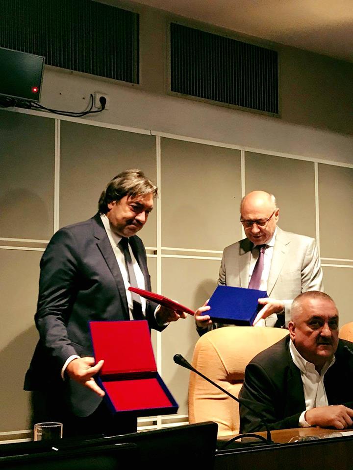 Prof. Dr. Irinel Popescu, presedinte de onoare al ROMTRANSPLANT, Asociatia profesionala a transplantologilor din Romania, impreuna cu dr. Victor Zota, presedintele Fundatiei pentru Transplant, au acordat spitalului aceasta distinctie pentru sustinerea activitatii de transplant hepatic, dar in primul rand pentru initierea programului de transplant pulmonar in Romania.