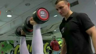 "Pentru persoanele pana la varsta de 30 de ani, Bogdan va exemplifica acum un alt tip de exercitiu. TRX- un antrenament suspendat, la care folosim greutatea corpului. Lucreaza foarte bine partea superioara, cat si partea inferioara prin miscarea asta de a trage coatele in spate."