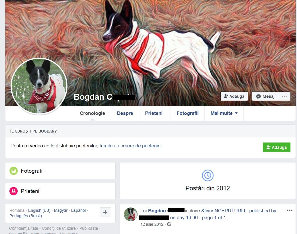 Bogdan și-a recativat contul de Facebook după ce a fost eliberat din arestul reventiv. Bărbatul fusese reținut după ce în mediul virtual au apărut imagini terifiante a zeci de animale lăsate să moară de foame și de sete la un adăpost ilegal situat în Prejmer, județul Brașov.