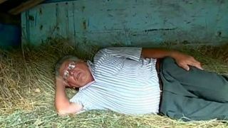 Nea Mitica doarme de o luna intr-un camion in care si-a facut un culcus din fan. Isi pazeste cultura de floarea-sorelui zi si noapte.