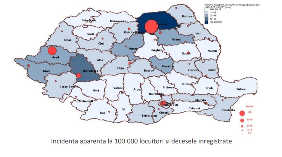 • 60.4% din decese au fost inregistrate in Suceava, București, Hunedoara, Arad si Timiș.