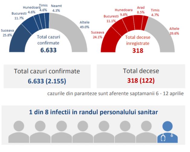 • 1 din 8 cazuri a fost inregistrat la personal sanitar.