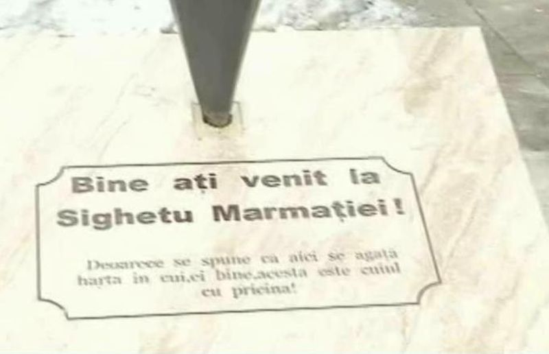 Ildiko Ibolya Beres- viceprimar Sighetu Marmatiei: „Cunoscand acea zicala despre Sighetul Maramtiei, s-a facut acest cui ca toti cei care vin sa viziteze orasul sa aiba un loc unde sa faca si o poza cu acel cui unde se agata harta.”