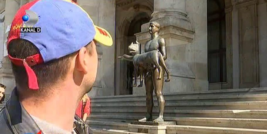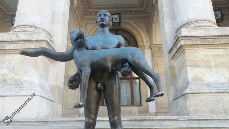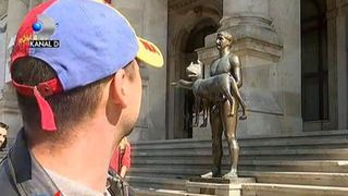 Statuia imparatului Traian din Bucuresti, din fata Muzeului National de Istorie, a fost vandalizata.