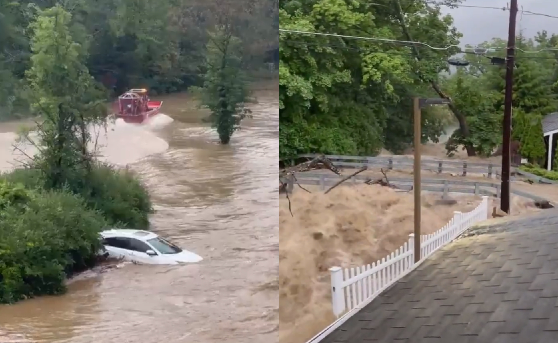 Video shows catastrophic flash flooding ongoing in Highland Falls/West Point, New York. Flash Flood Emergency declared for the area. pic.twitter.com/IK2lgsqMPJ