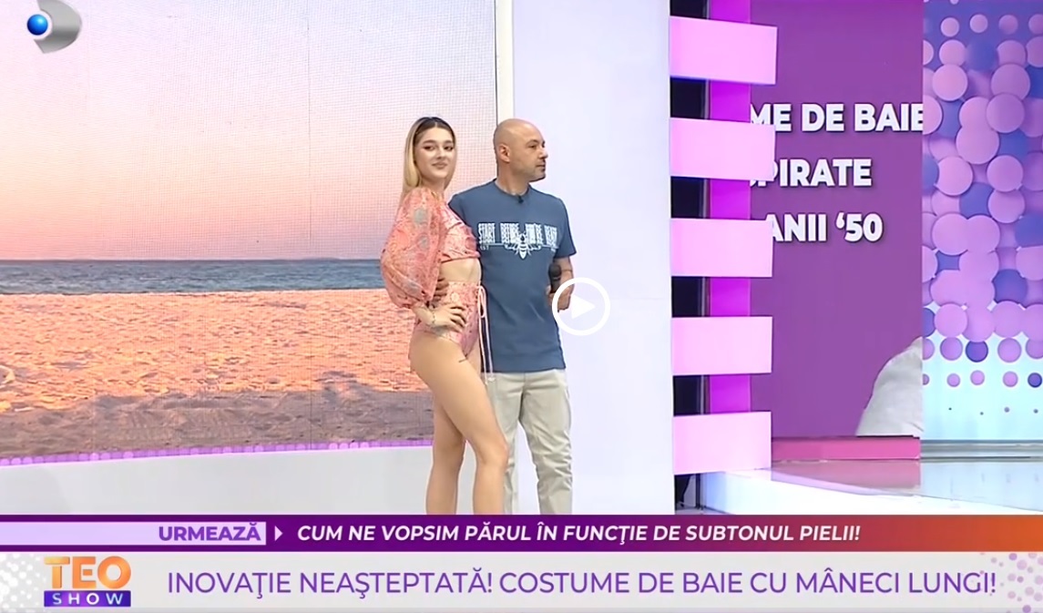 Ștefania, fosta concurentă de la ”Casa Iubirii”, a apărut în costum de baie în platoul emisiunii Teo Show, unde au fost prezentate costume de baie inspirate din moda anilor '50.
