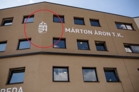 1 din 2 | Stema Ungariei, amplasata pe un centru cultural din Miercurea Ciuc! Un preot catolic a indemnat: “Trebuie sa fim tari in indentitatea noastra maghiara!”