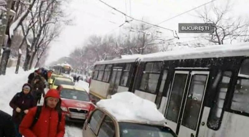 Zapada a pus stapanire si pe Capitala. Stratul de nea a atins aproape 30 de centimetri. Tramvaie blocate si