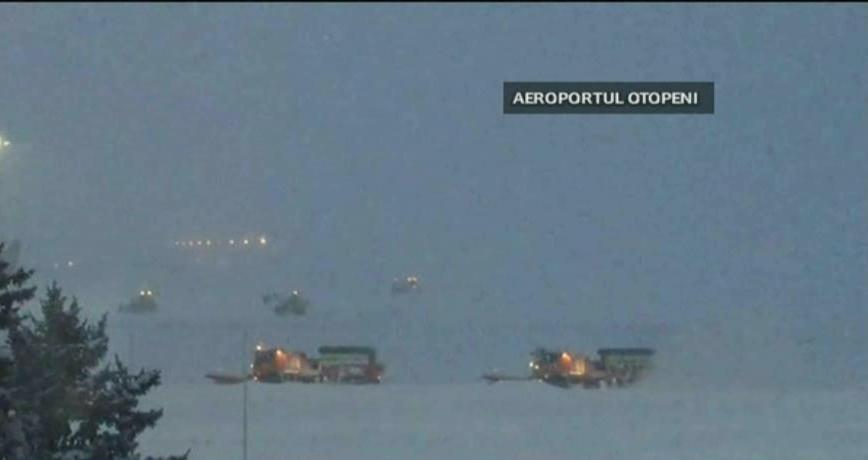 Si pe aeroportul Otopeni ninsoarea a ingreunat activitatea. Niciun avion nu a putut decola in aceasta dimineata intre orele 6.00 si 8.30.