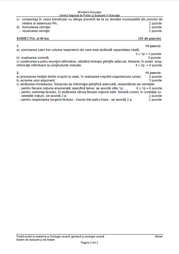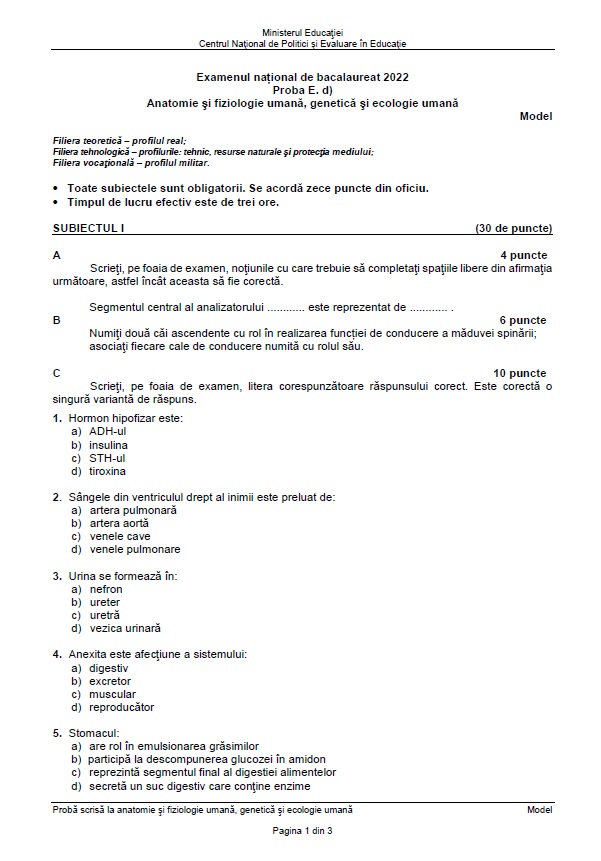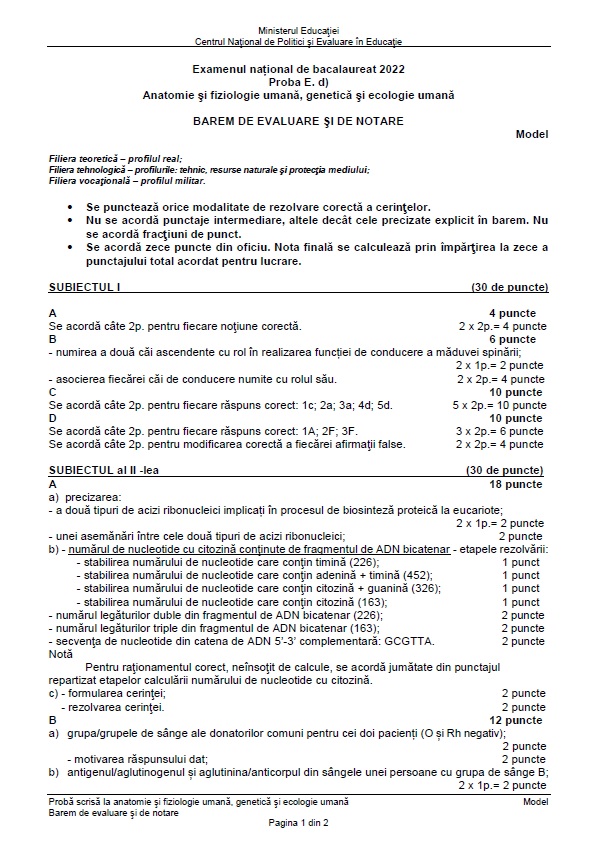 6 din 6 | Subiecte Anatomie - Biologie BAC 2022. Barem de corectare.