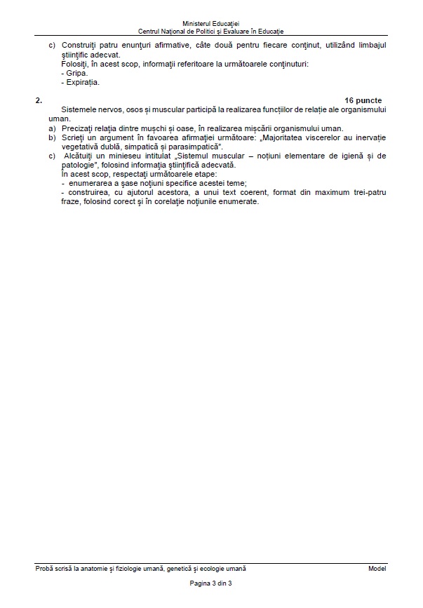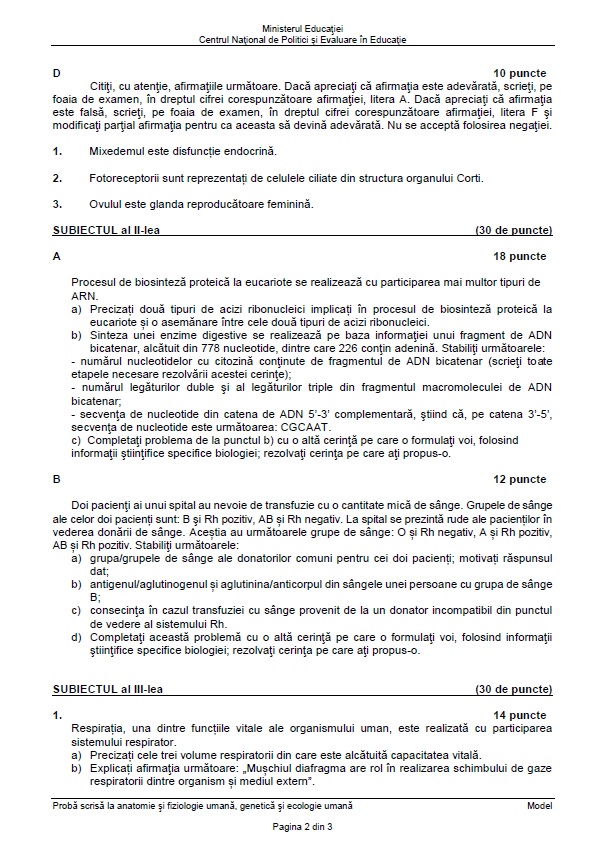 2 din 6 | Subiecte Anatomie - Biologie BAC 2022
