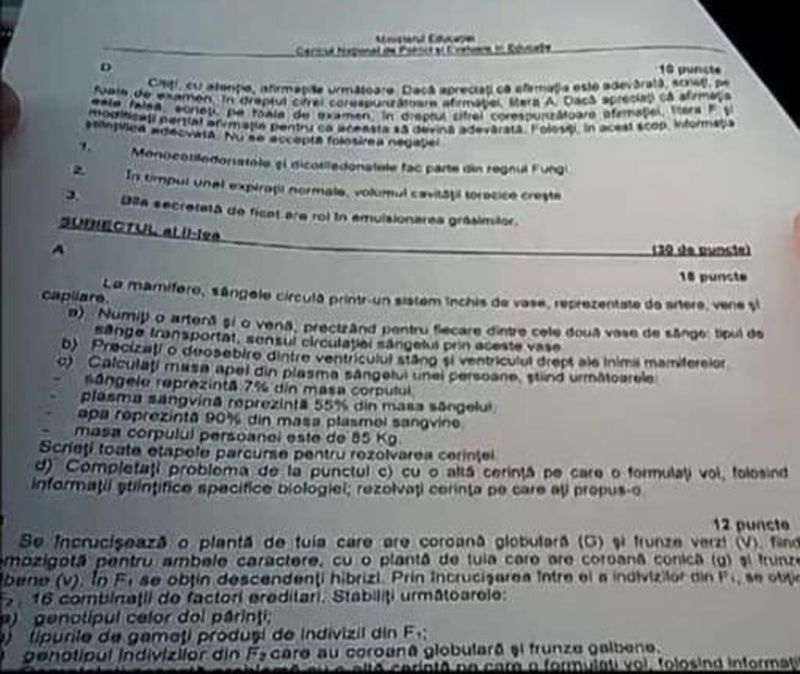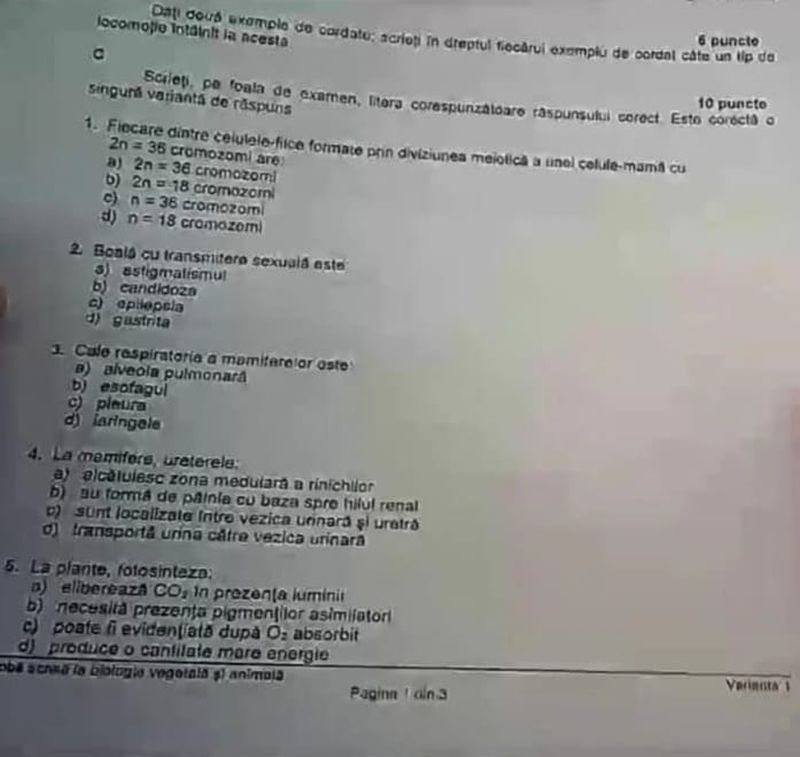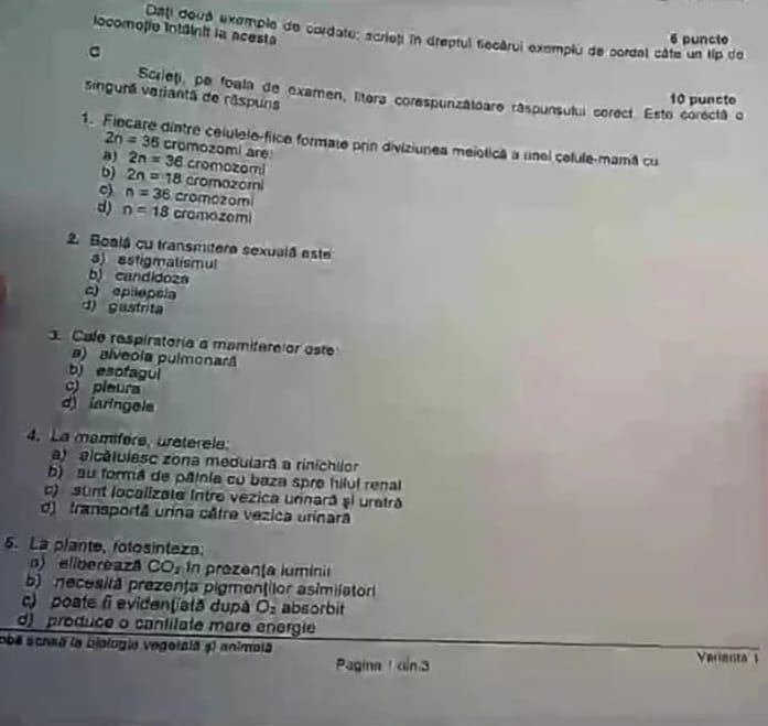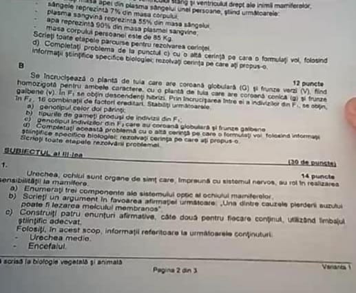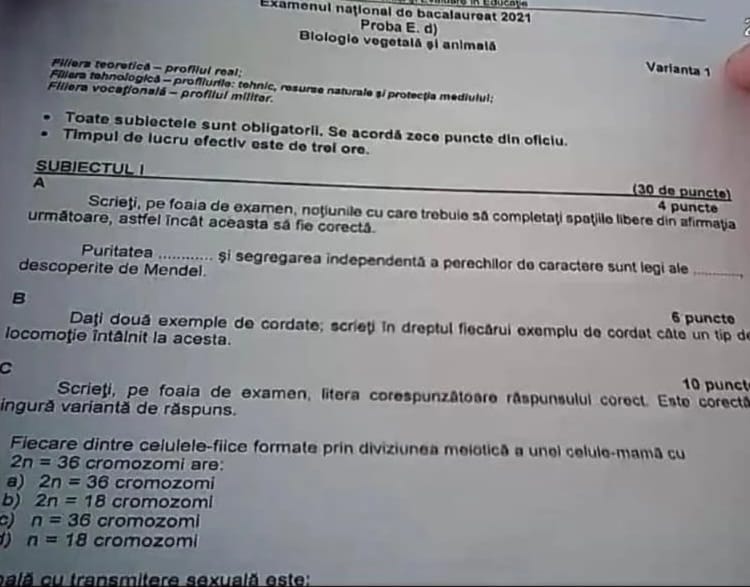2 din 8 | Subiecte Biologie BAC 2021 Edu.ro. Barem de corectare