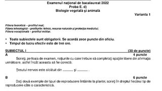 Subiectele la biologie la BAC 2022 au fost distribuite la ora 09:00, atunci când a început examenul, iar pentru rezolvarea lor liceenii au la dispoziție trei ore.