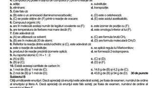 Testul pentru proba la chimie este structurat în trei subiecte.