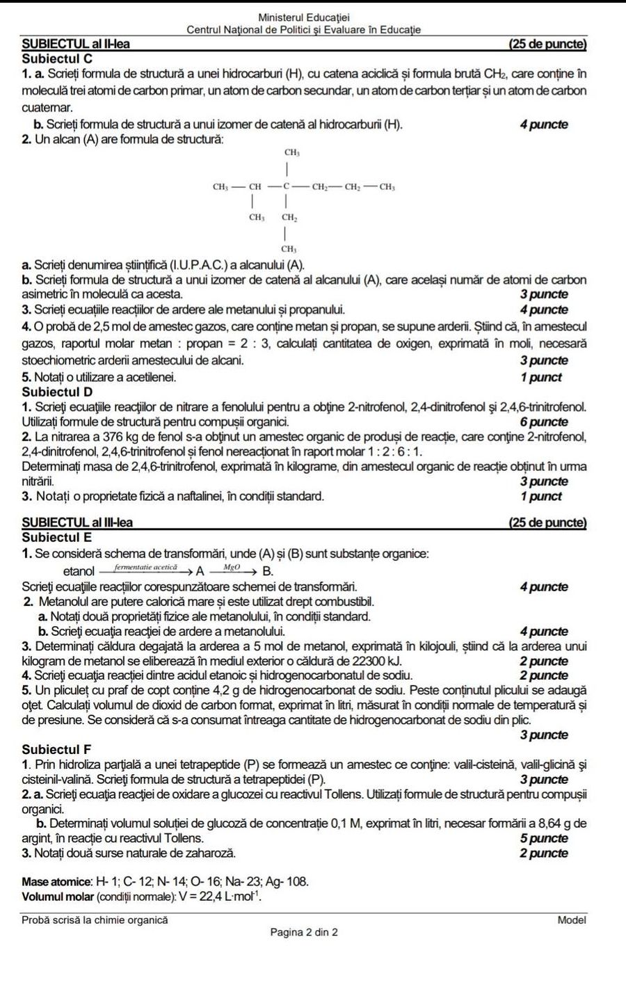 Primul subiect are trei cerințe, în timp ce al doilea și al treilea câte două.