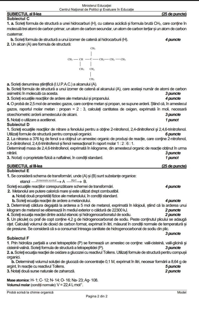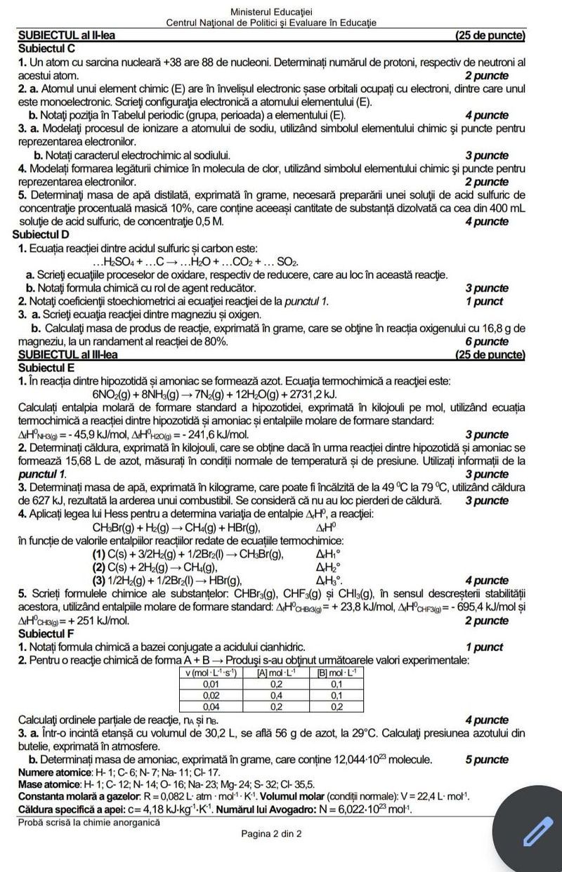 2 din 5 | Subiecte Chimie BAC 2022: Ce au primit elevii la Chimie organică şi anorganică? Baremul de corectare, pe EDU.ro