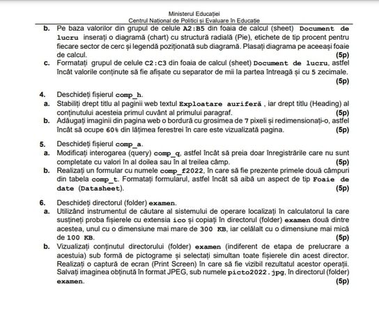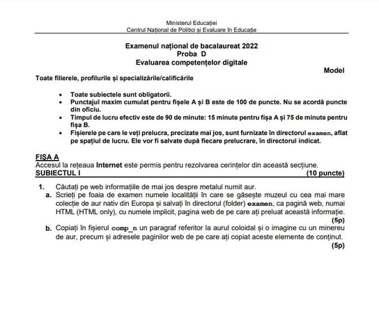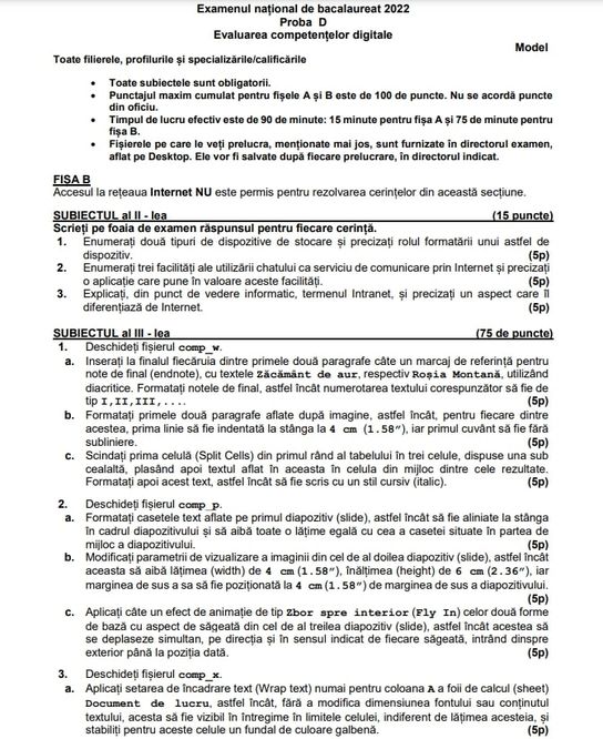- 75 de minute pentru fișa B (fără conexiune la internet).