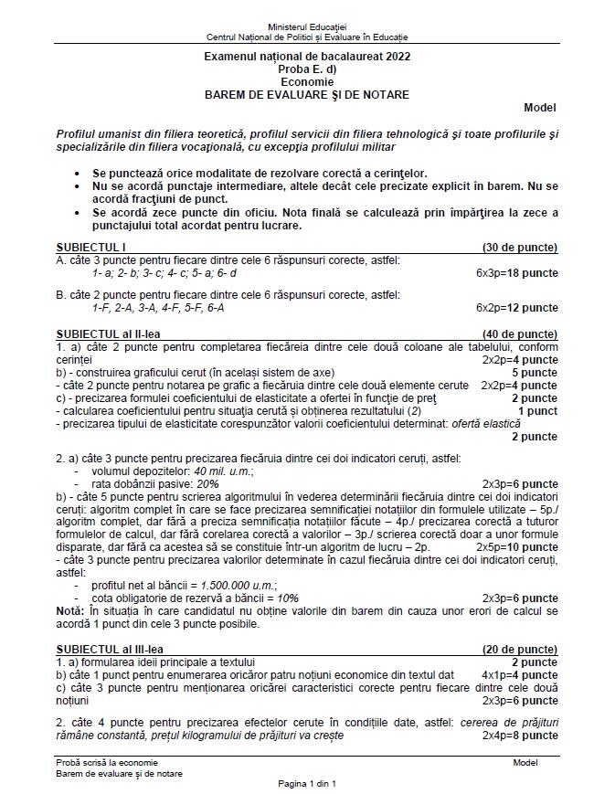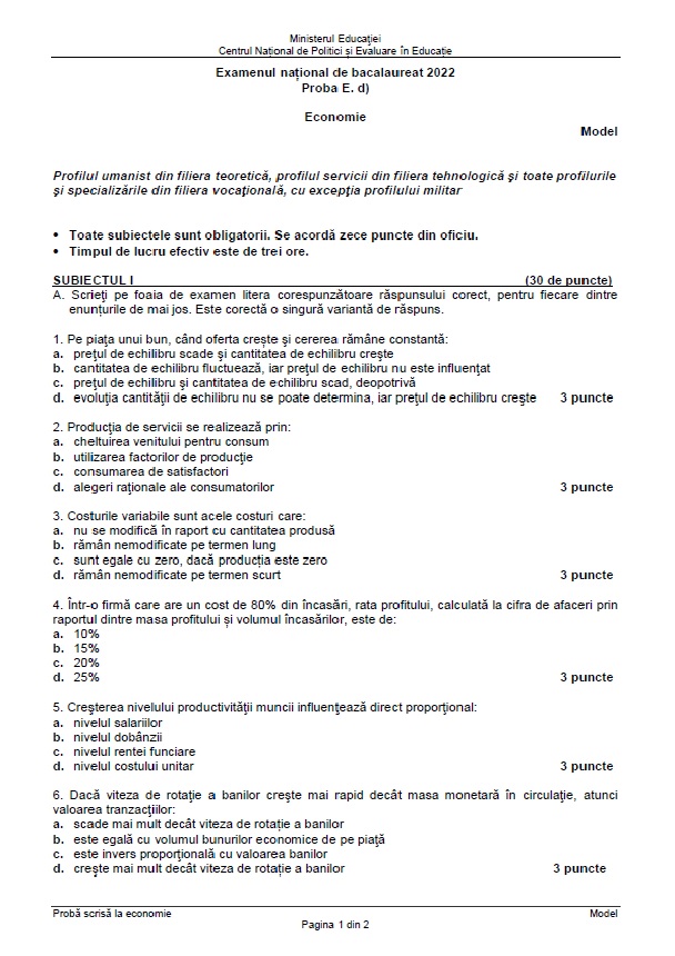 Elevii claselor a XII-a și a XIII-a vor susține proba la Economie pe 22 iunie 2022. Pe site-ul oficial al Ministerului Educației, EDU.RO, au fost încărcate modele de subiecte la Economie pentru Bacalaureat 2022.
