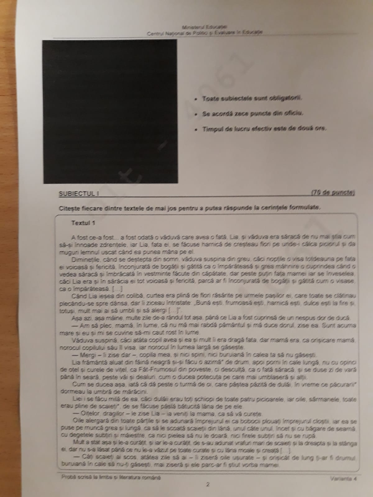 2 din 9 | Subiecte Evaluare Națională 2023. Ce a picat la Limba și literatura română?