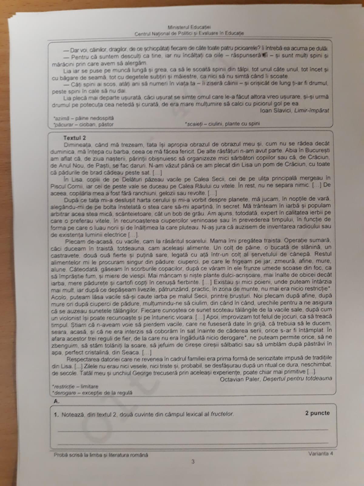 3 din 9 | Subiecte Evaluare Națională 2023. Ce a picat la Limba și literatura română?