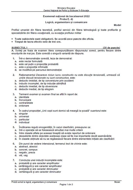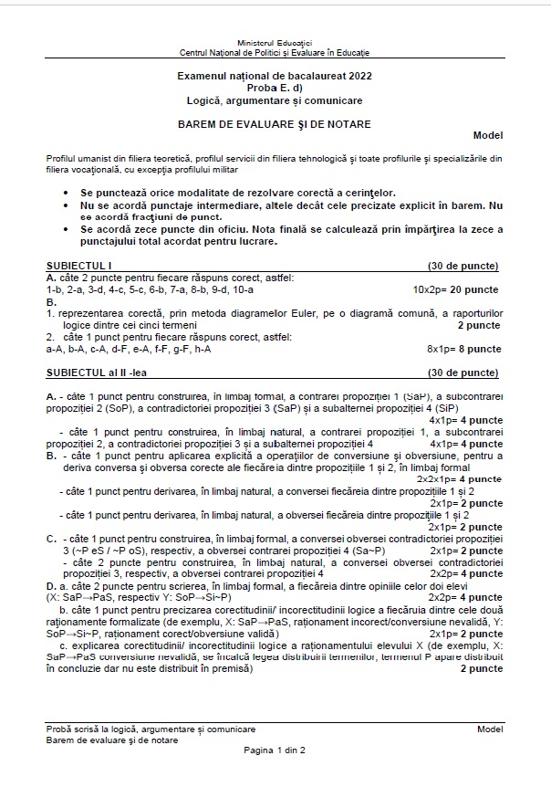 6 din 6 | Subiecte Logică BAC 2022: barem de corectare.