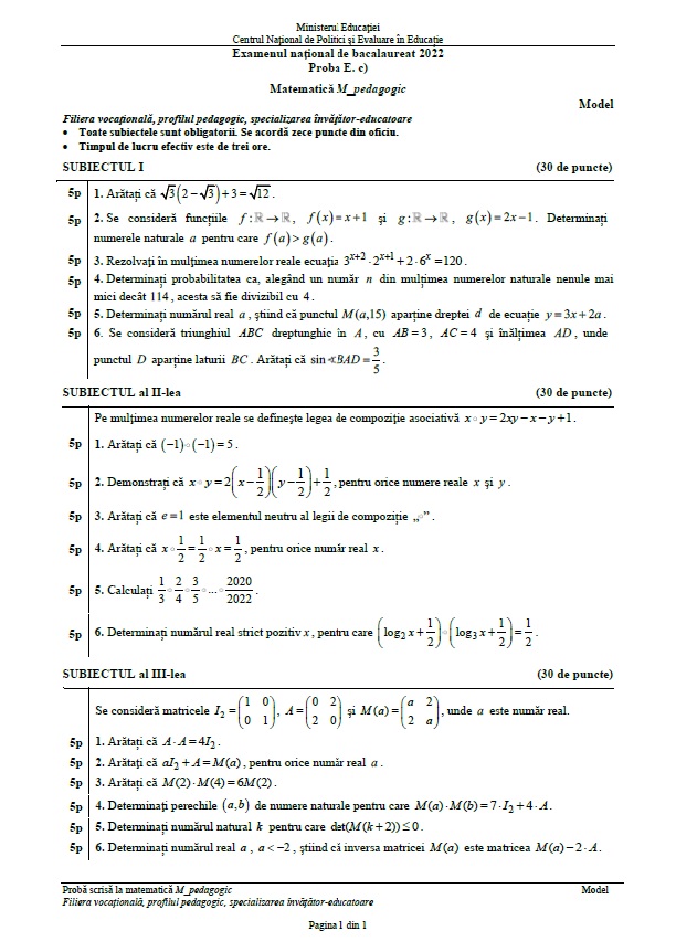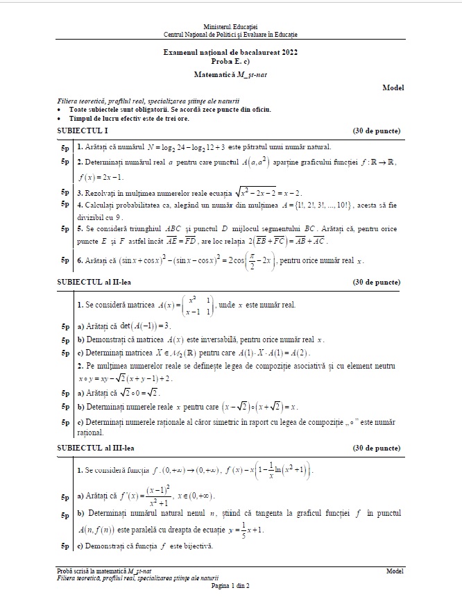 2 din 11 | Subiecte Matematică Bac 2022: mate-info.