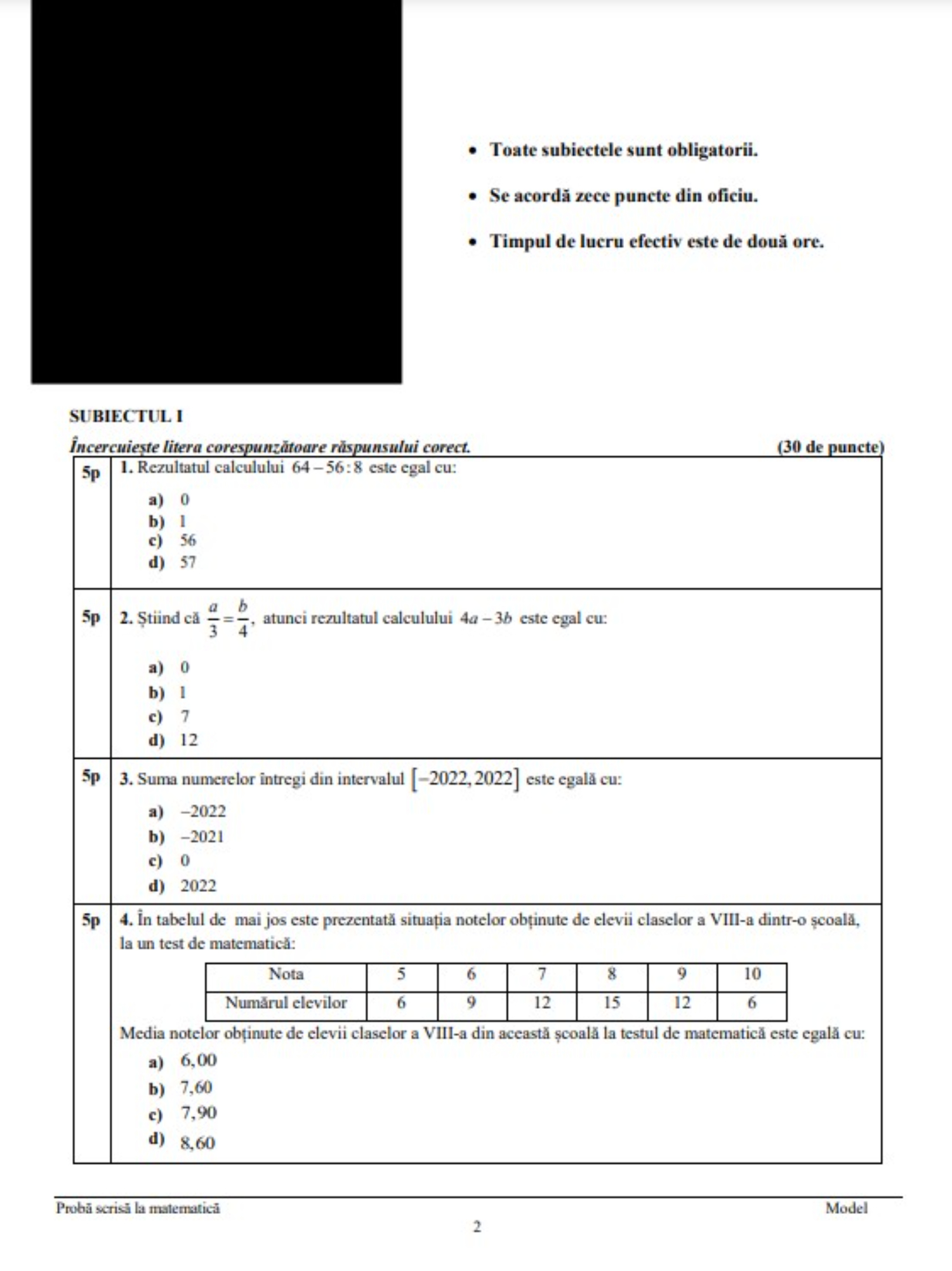 2 din 8 | Subiecte Matematică Evaluare Națională 2023. Cum arată subiectele pentru clasa a VIII-a?
