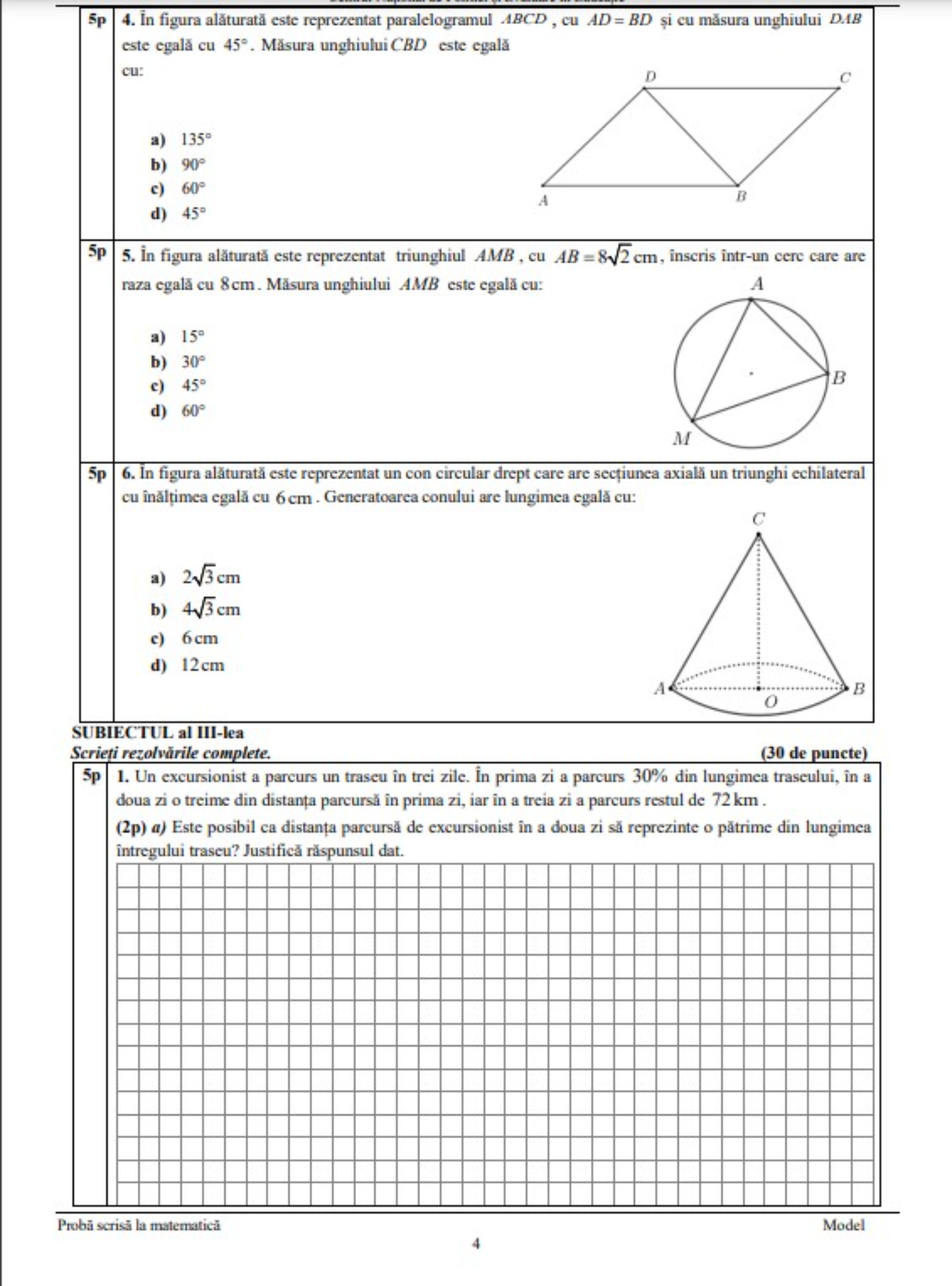 4 din 8 | Subiecte Matematică Evaluare Națională 2023. Cum arată subiectele pentru clasa a VIII-a?