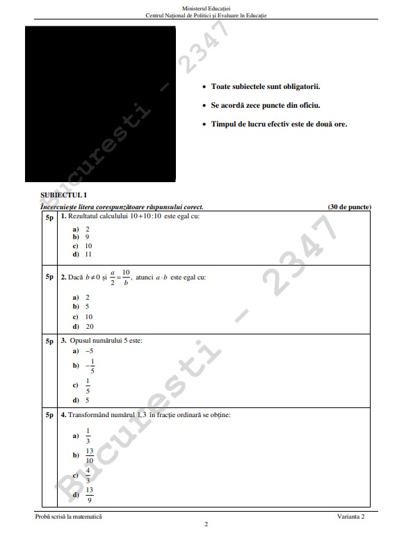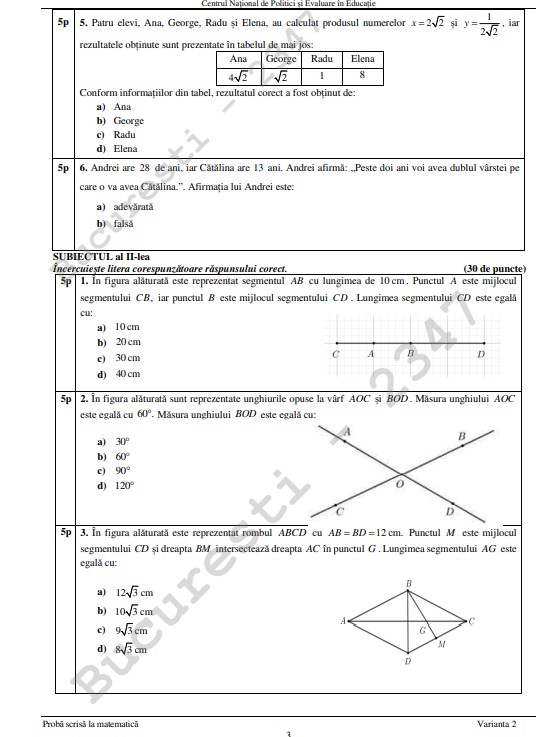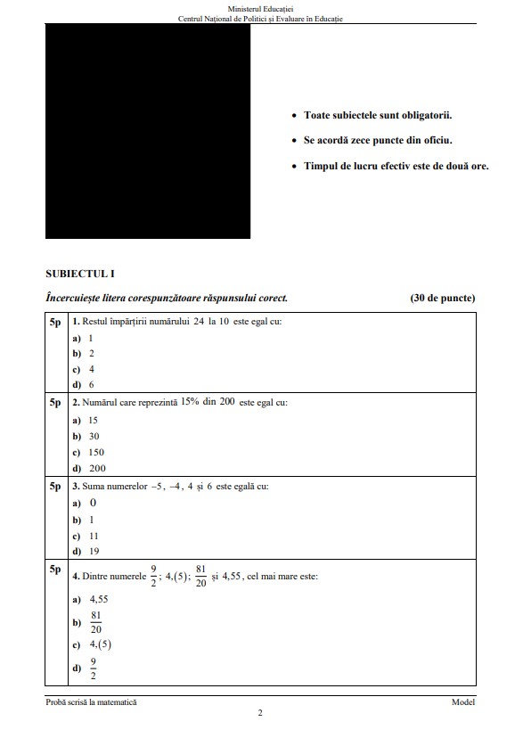 2 din 17 | Edu.ro Subiecte Evaluare Națională 2022 Matematică