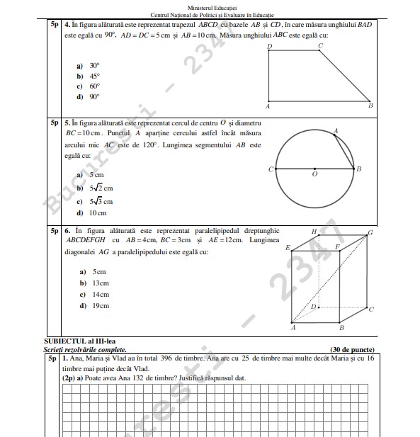 4 din 17 | Edu.ro Subiecte Evaluare Națională 2022 Matematică