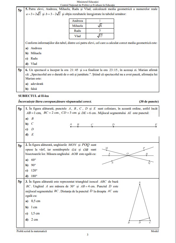 3 din 17 | Edu.ro Subiecte Evaluare Națională 2022 Matematică