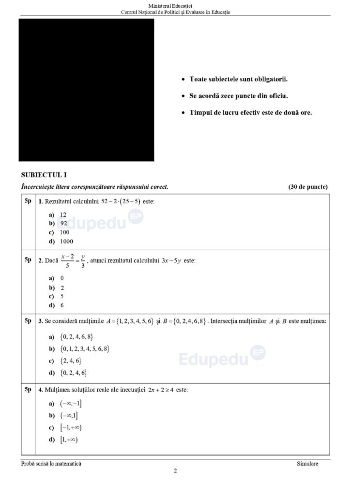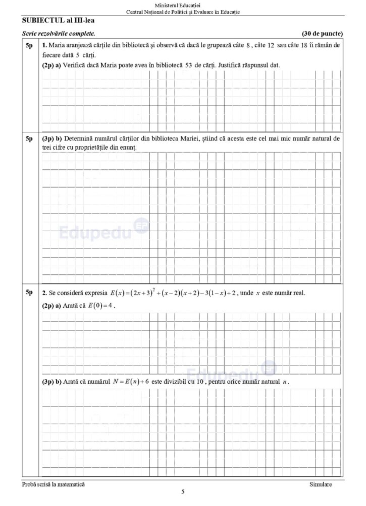 5 din 10 | Subiecte matematică simulare Evaluare Națională 2024