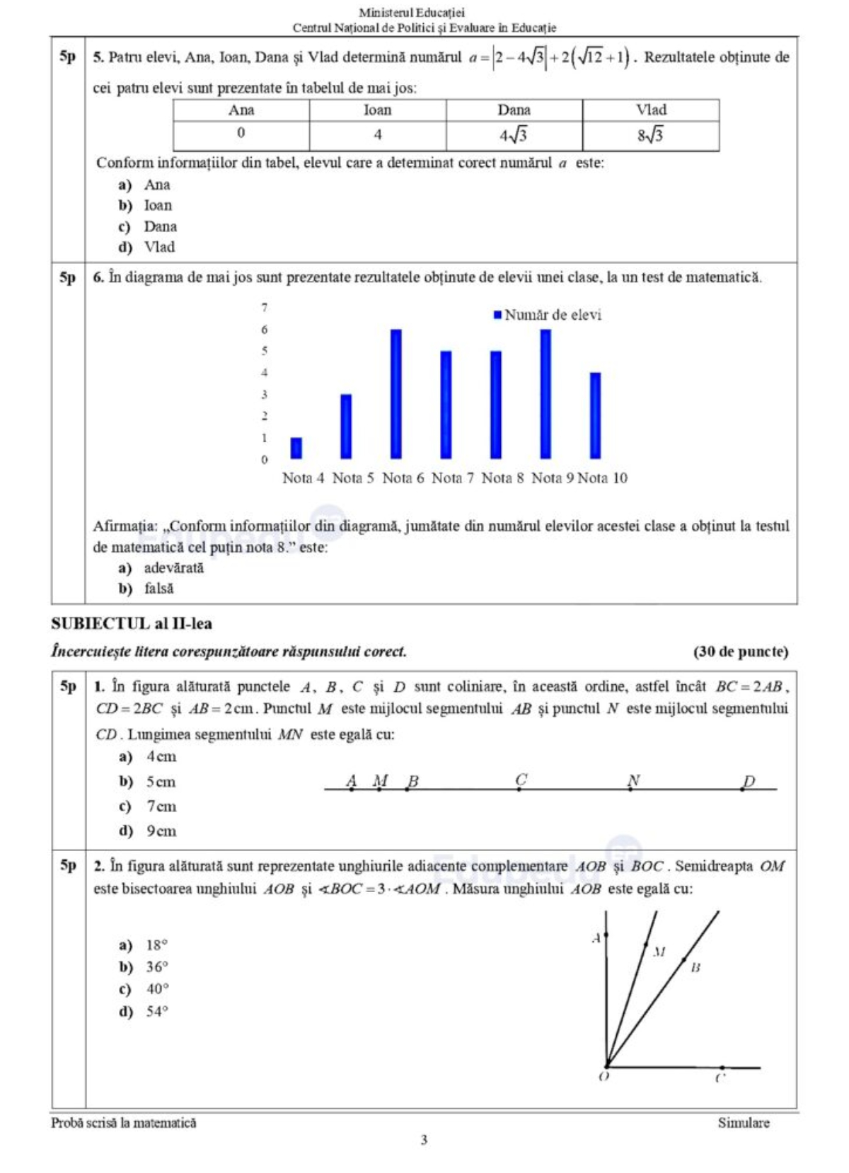 3 din 10 | Subiecte matematică simulare Evaluare Națională 2024
