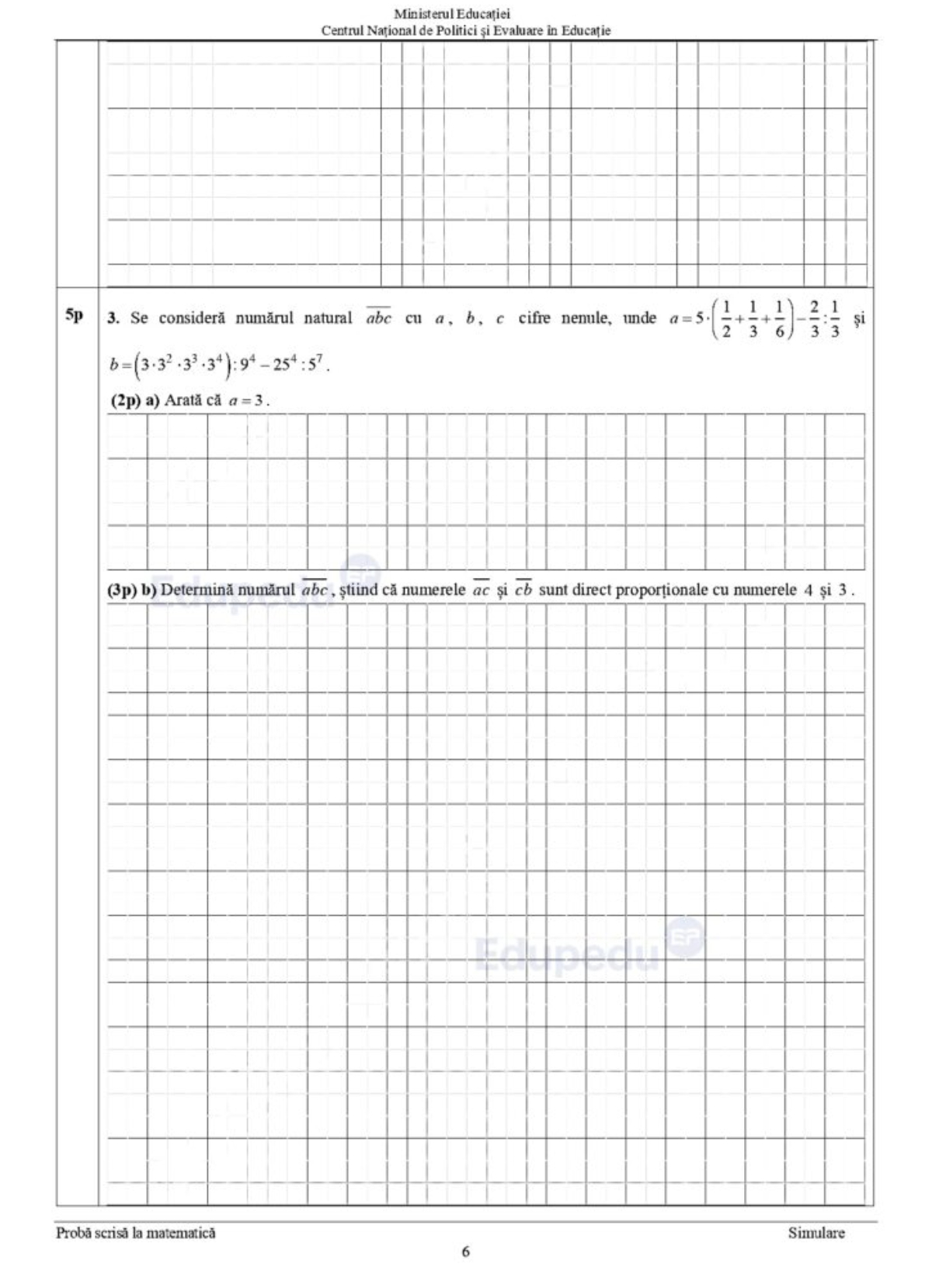 6 din 10 | Subiecte matematică simulare Evaluare Națională 2024