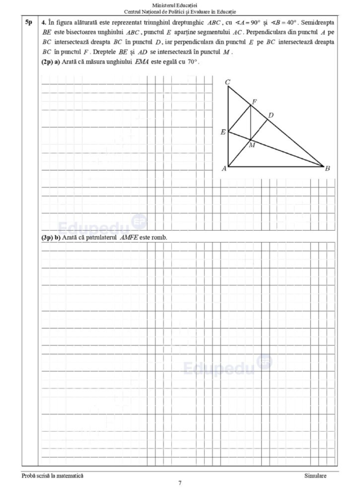 7 din 10 | Subiecte matematică simulare Evaluare Națională 2024