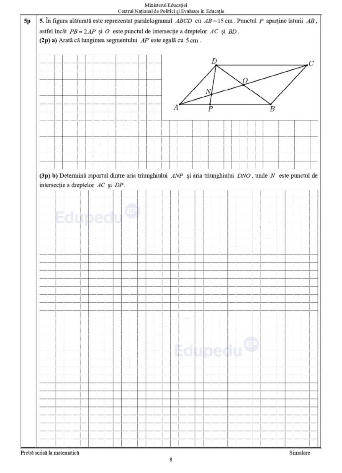 8 din 10 | Subiecte matematică simulare Evaluare Națională 2024