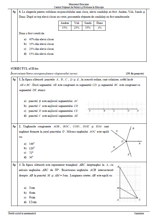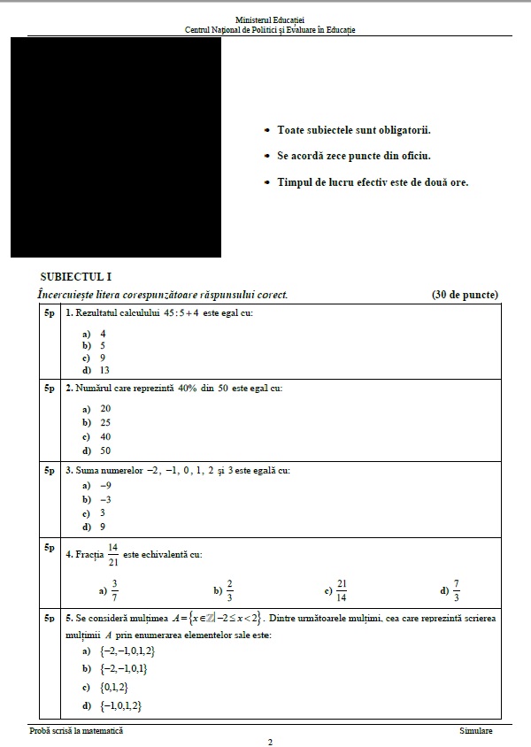 2 din 8 | Subiecte Evaluare Națională simulare Matematică