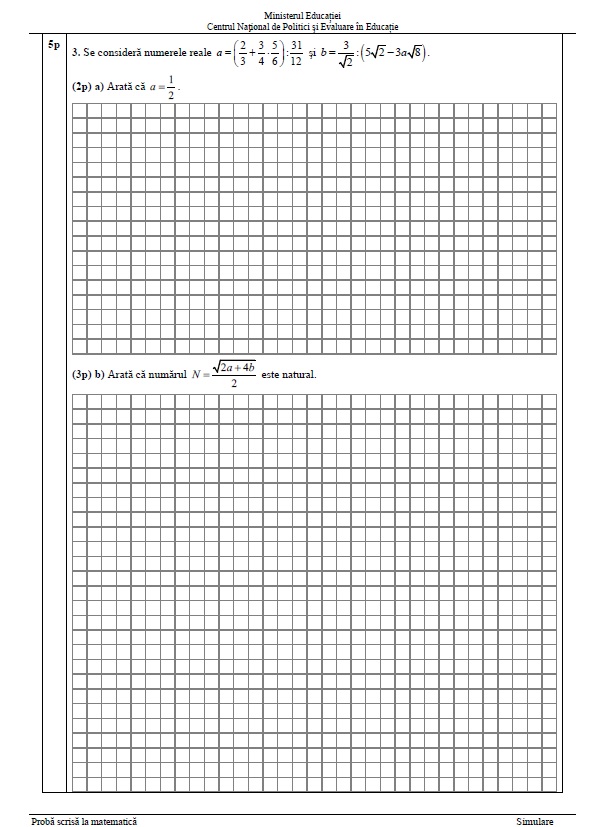 3 din 8 | Subiecte Evaluare Națională simulare Matematică