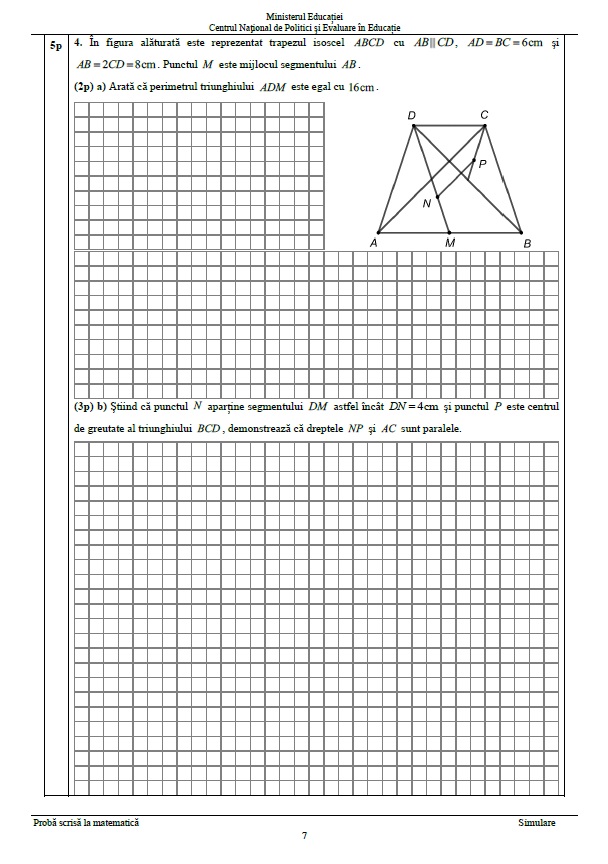 7 din 8 | Subiecte Evaluare Națională simulare Matematică