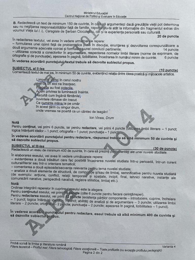 UPDATE. Baremul de corectare la Română BAC 2021 a fost publicat AICI